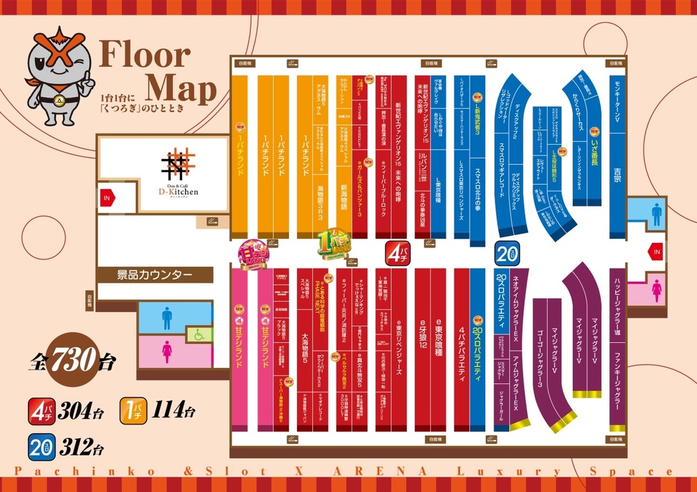 アクセス・入場案内access 住所 千葉県松戸市高塚新田326-5 TEL 047-392-0300 営業時間 10:00〜22:45 遊技台数 パチンコ418台スロット312台 遊技料金 4円パチンコ1円パチンコ20円スロット 駐車場 530台
